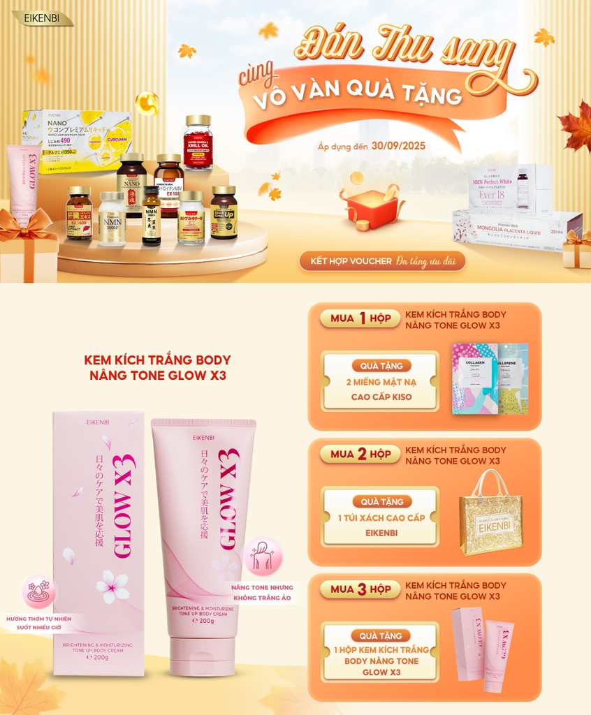 KHUYẾN MÃI KEM KÍCH TRẮNG BODY GLOW X3 EIKENBI