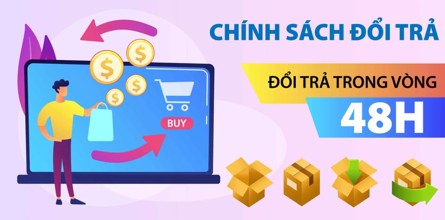 Tiến hành đổi và trả hàng trong 7 ngày kể từ thời điểm giao hàng thành công